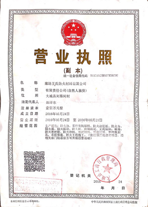 廊坊王氏防火材料有限公司是生產(chǎn)和經(jīng)營(yíng)于一體的防火材料技術(shù)經(jīng)濟(jì)實(shí)體,擁有生產(chǎn)設(shè)施及設(shè)備。